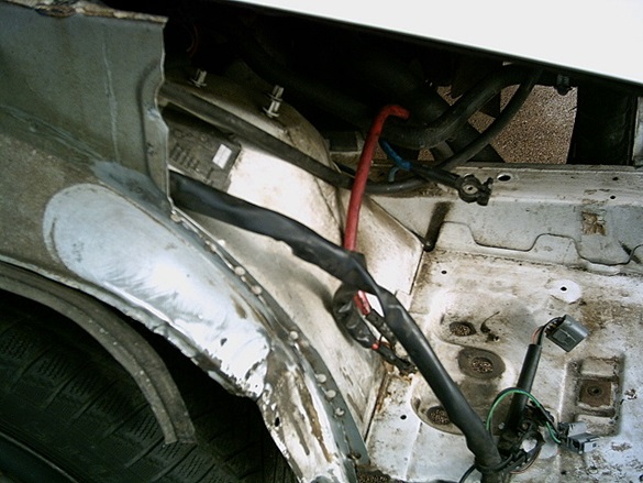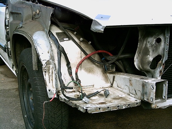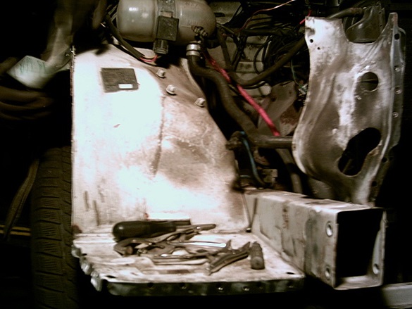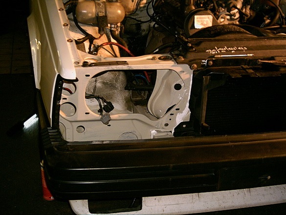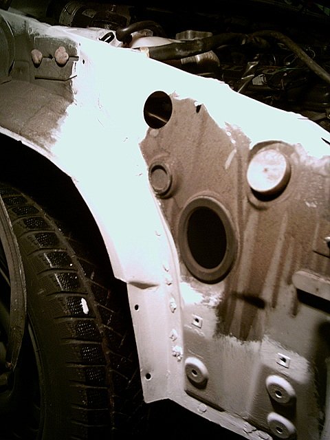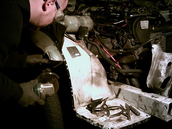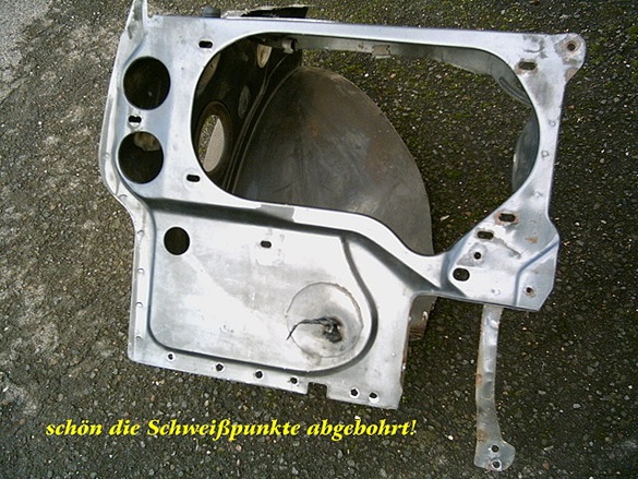 Einige Reparaturbleche waren nicht mehr lieferbar, da musste ein schlachter herhalten, schnell wurde der Batteriekasten samt Maskentrager herausgetrennt und neu einverschweißt.